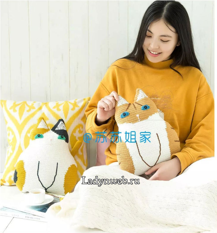 Подушка "Кот" крючком. Схемы. / Ladynweb.ru