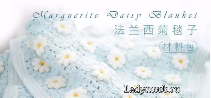 Плед из квадратных мотивов с ромашками, крючком, схемы. / Ladynweb.ru