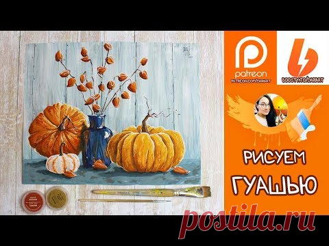 Рисуем гуашью натюрморт с тыквами и физалисом! Тизер урока! #Dari_Art