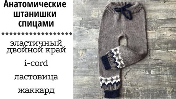 Анатомические штанишки спицами || эластичный двойной край, i-cord, ластовица, жаккард ||