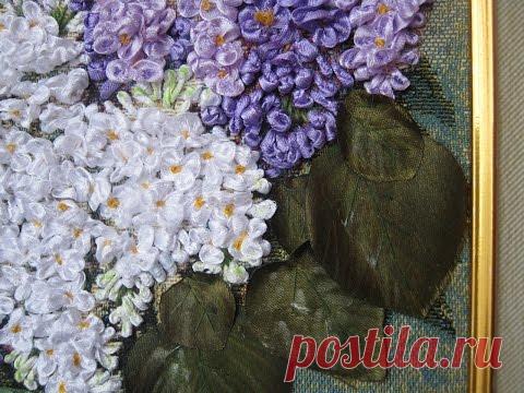 Картина атласными лентами - СИРЕНЬ у ОКНА. Картина СИРЕНЬ у ОКНА - вышитая атласными лентами.