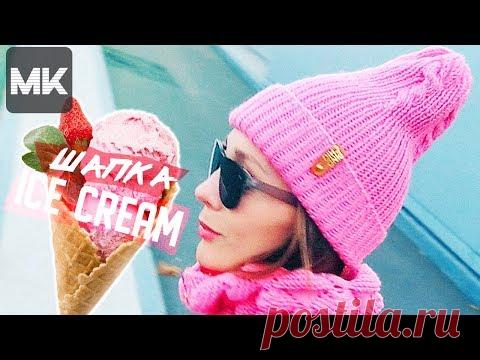 ВЯЗАНАЯ ШАПКА ICE CREAM CONE / МК по вязанию модной женской шапочки на осень-зиму спицами