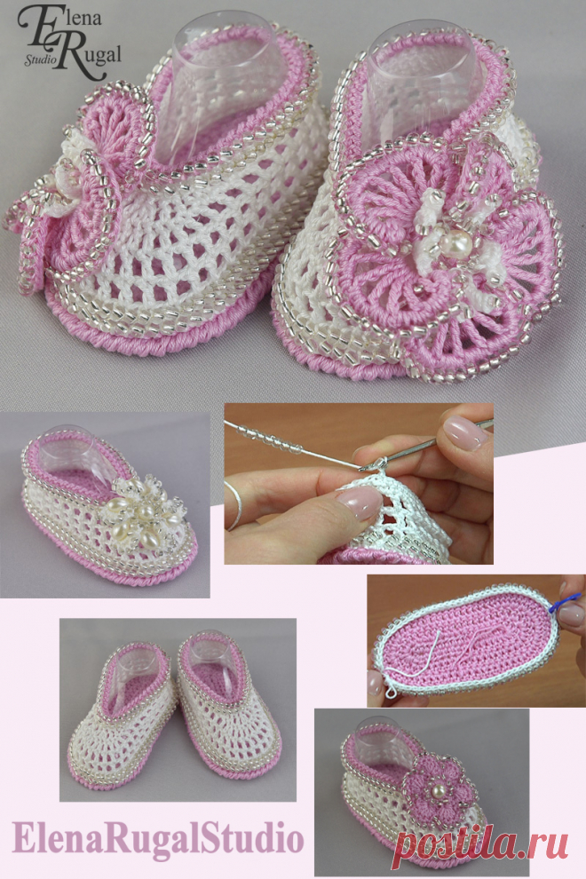 Нарядные пинетки. Вязание крючком с бисером