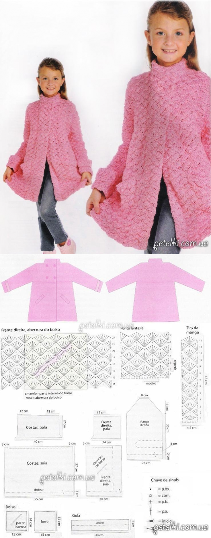 Теплое пальто крючком для девочки. Схемы, выкройка