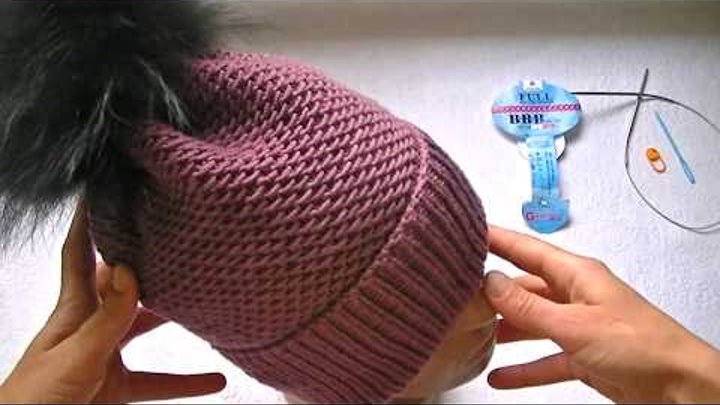 Вяжем  шапку узором  «Кольчуга»  спицами.
