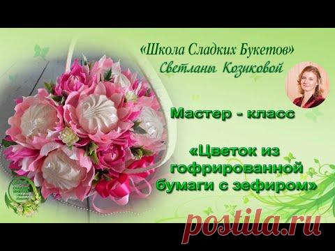 Мастер класс. Цветок из гофрированной бумаги с зефиром