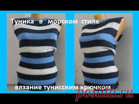 Туника в морском стиле, вязание тунисским крючком,crochet blouse( В 171)