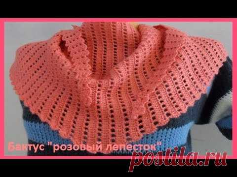 БАКТУС "Розовый лепесток" вязание Крючком с элементами БРЮГГЕ,crochet shawl(Ш № 140)