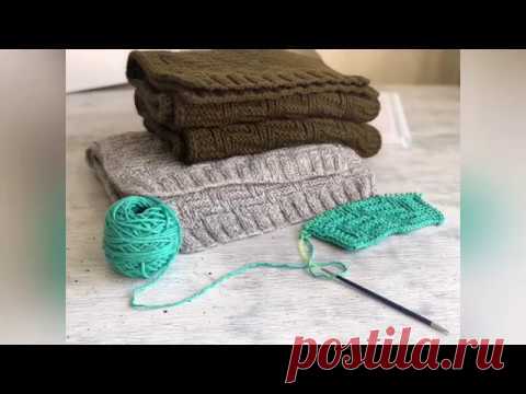 Мужской шарф спицами. Очень простой двухсторонний узор. Порядное описание рисунка.