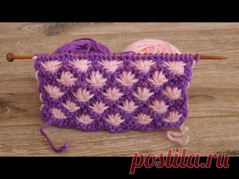 Двухцветный узор «Астры» спицами | Aster Flowers knitting pattern🌷