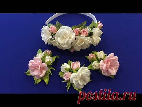 Easy ribbon flowers.DIY/Flores fáciles de la cinta/Несложные цветочки из лент, 2.5 см