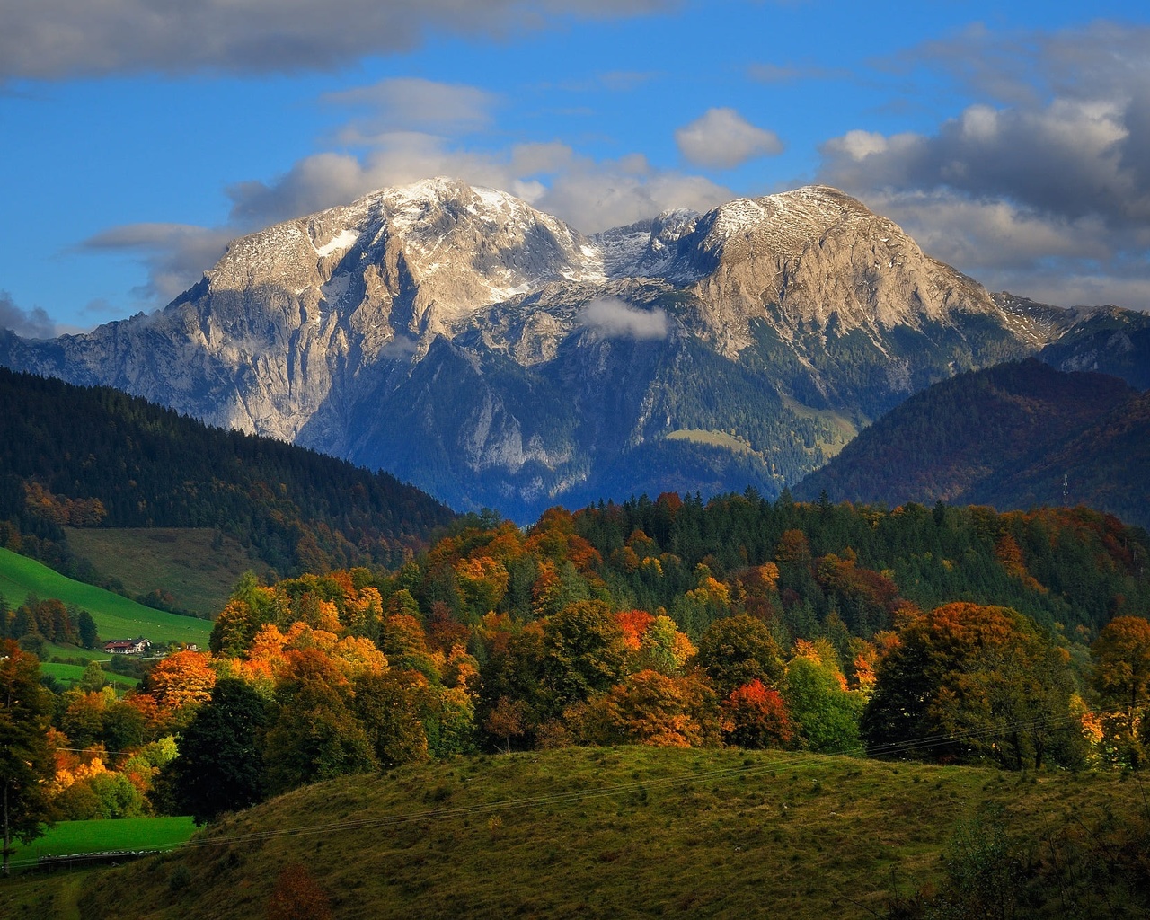 Картинки осень, облака, пейзаж, горы, природа, германия, альпы, леса - обои 1280x1024, картинка №362409