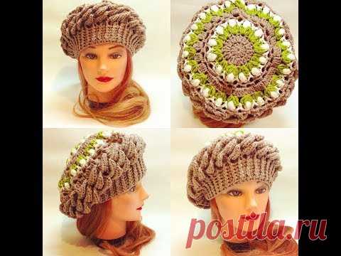 Берет подснежники крючком с двухслойным узором.crochet cap - YouTube