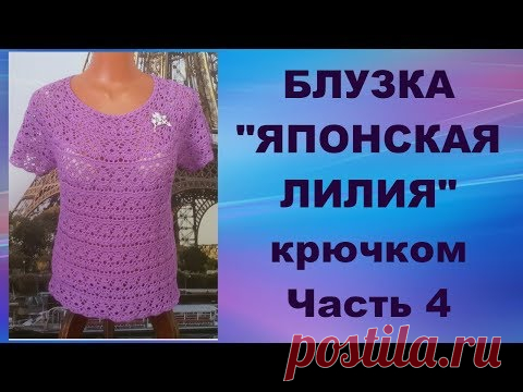 Блузка"Японская лилия"крючком.Часть4.МК для начинающих.Blouse"Japanese Lily"crochet.Part 4.
