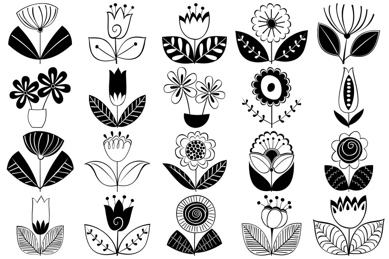 Retro Flower Doodles AI EPS PNG By Me and Ameliè | TheHungryJPEG.com