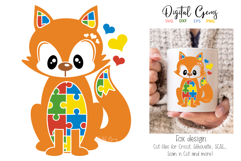 Fox jigsaw / autism design By Digital Gems | TheHungryJPEG.com