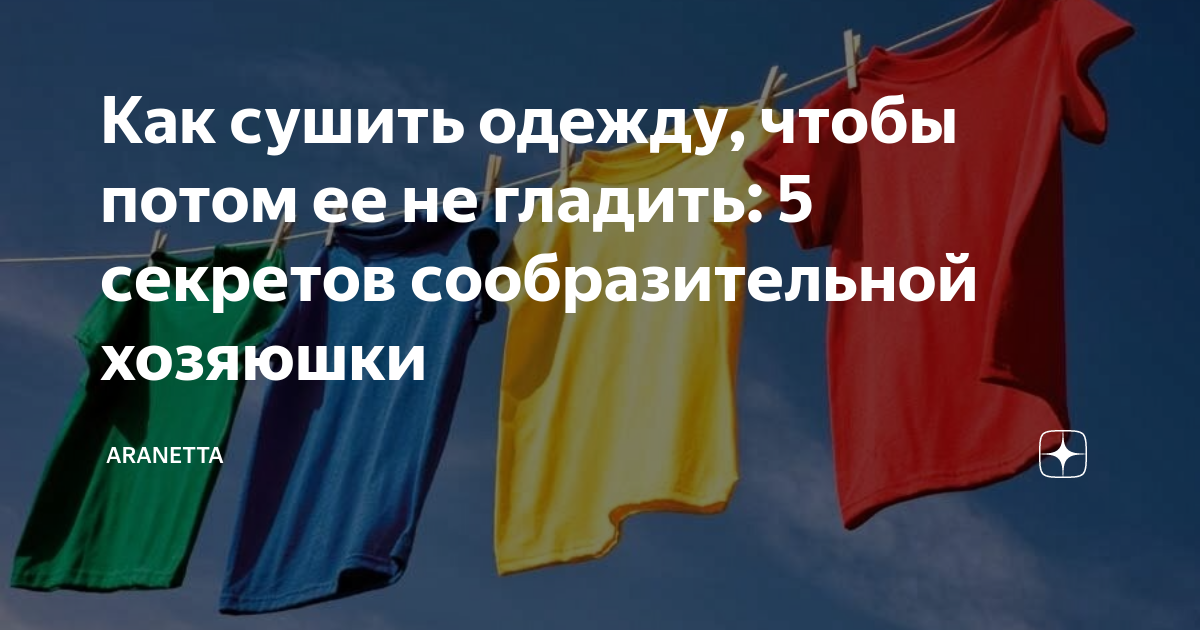 Как сушить одежду, чтобы потом ее не гладить: 5 секретов сообразительной хозяюшки Не всегда есть достаточно времени, да и желания выгладить целый ворох постиранной и высушенной одежды, особенно после рабочего дня, да еще для всех членов семьи. Предприимчивые и сообразительные хозяюшки знают несколько способов и секретов, которые помогут обойтись без глажки в большинстве случаев. Охотно поделимся рекомендациями.