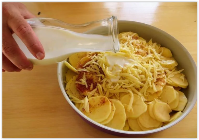 Заливаем картошку кефиром и ставим в духовку ...получается вкуснота!