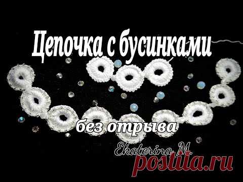 Вязание крючком. Цепочка с бусинками без отрыва. Урок для начинающих.