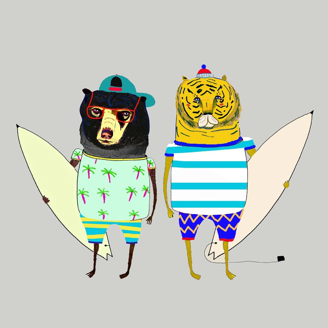 surf art, surf illustration, art print, kids decor, nursery wall art, prints, wholesale, animal illustration - Ashley Percival Illustration