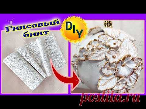 Новогодний шар из гипсового бинта с цветами. DIY/рукоделие