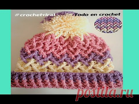 Gorro a crochet fácil y rapido punto cruzado 3D