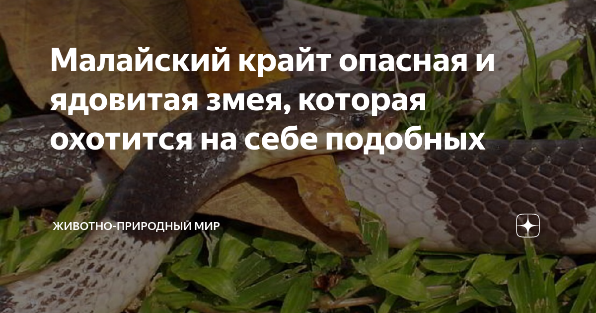 Малайский крайт опасная и ядовитая змея, которая охотится на себе подобных Здравствуйте. Сегодня вновь пополним наш список рассказов о змеях. И вновь героем станет змея, которая своим укусом в силах лишить жизни нескольких человек, плюс ко всему эта рептилия поедает себе подобных. Малайский или голубой крайт Фото взято из открытого источника Малайский крайт не такая уж и редкая змея, и встречается в Индонезии, а также по всему юго-востоку Азии. Этот вид крайтов самый опа