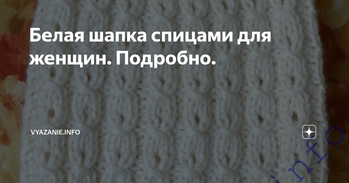 Белая шапка спицами для женщин. Подробно. Всё-таки, белый цвет самый универсальный: подходит к любой одежде, молодит!