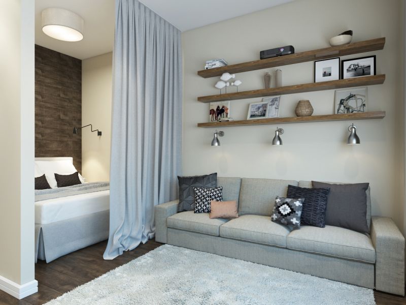 Однокомнатная квартира с кроватью и диваном: дизайн на фото Подборка вариантов размещения в одной комнате дивана и кровати. Как можно зонировать пространство.
