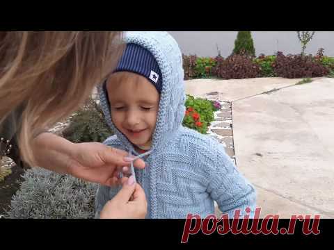 МК на связанную кофту с капюшоном на замке, с карманами ///на мальчика 2-3года