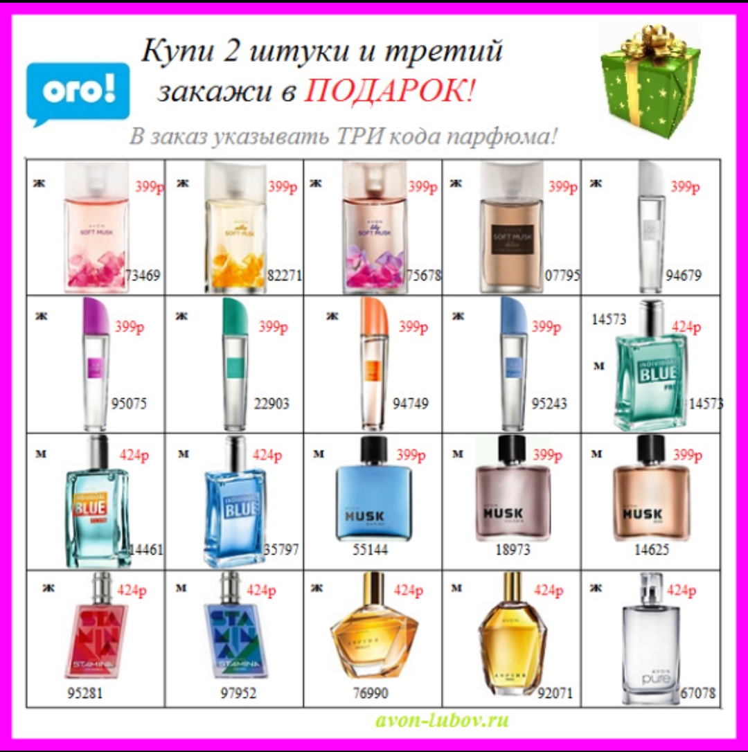 💥💥💥💥 До 20 октября включительно еще действует эта акция (цена, коды для заказа - все на картинке) - 🎁 ПРИ ПОКУПКЕ ДВУХ ПАРФЮМОВ - ТРЕТИЙ ВЫБРАТЬ И ЗАКАЗАТЬ В ПОДАРОК 🎁 📱📱📱 Пишите ваш заказ здесь или на телефон: 8(908)046-52-89 Viber, WhatsApp. 🛍️ Цена доставки - 100 - 120р. Товар получать на постамате. Оплатить при получении там же. #avobsait #парфюмвподарок #парфюмсосклада #Avon