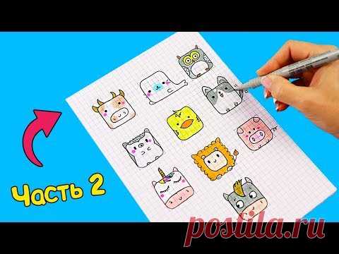 10 Квадратных животных ПО КЛЕТОЧКАМ! Часть 2. Простые рисунки для детей