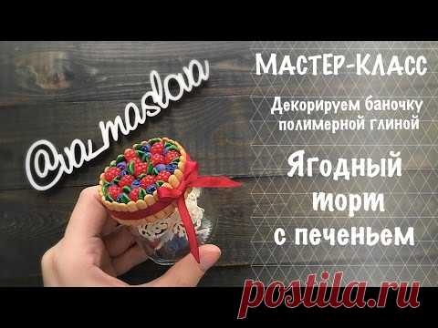 МАСТЕР-КЛАСС / Декорируем баночку полимерной глиной / ЯГОДНЫЙ ТОРТ С ПЕЧЕНЬЕМ / Polymer clay