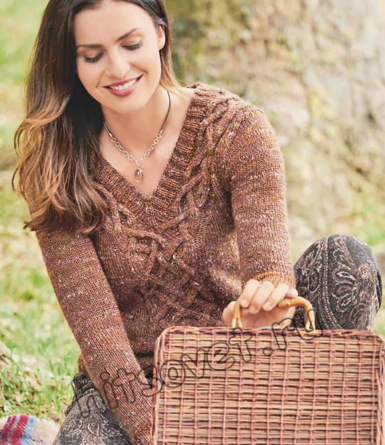 Стильный твидовый пуловер с косами - Хитсовет Вязание спицами для женщин стильного твидового пуловера с косами со схемами и пошаговым бесплатным описанием.