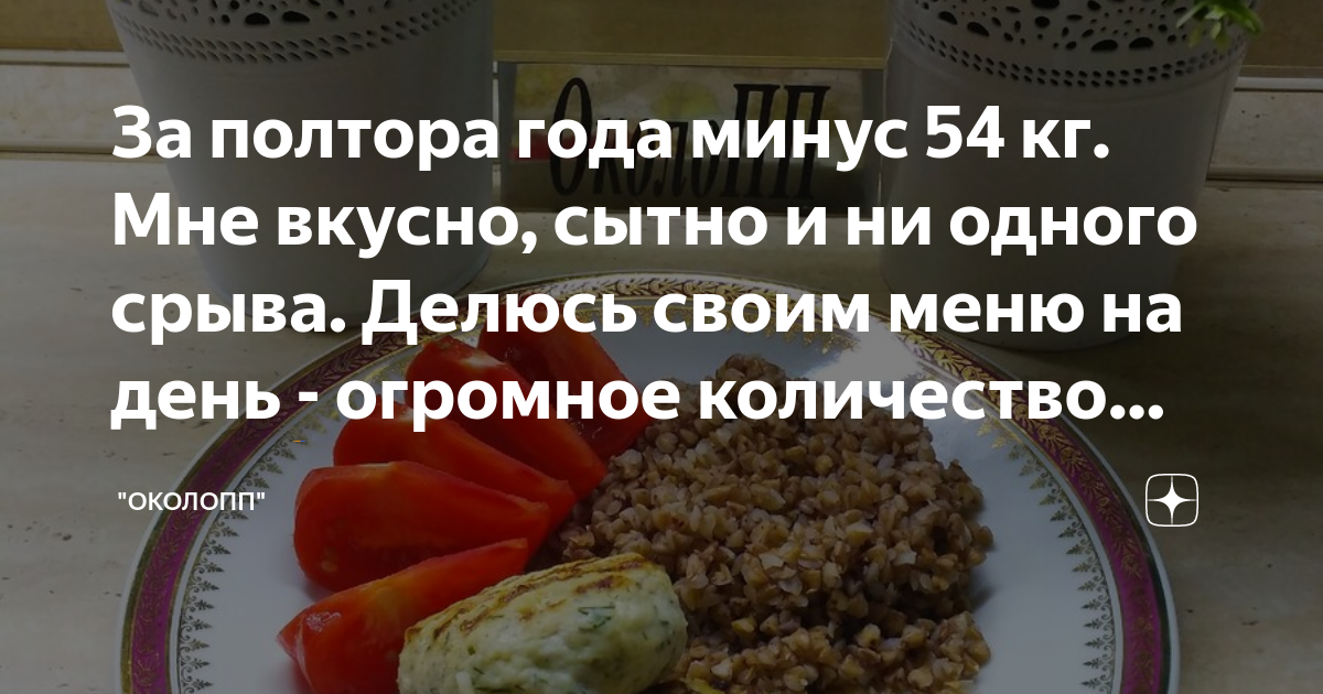 За полтора года минус 54 кг. Мне вкусно, сытно и ни одного срыва. Делюсь своим меню на день - огромное количество еды🤣. Меню 18.10.2019