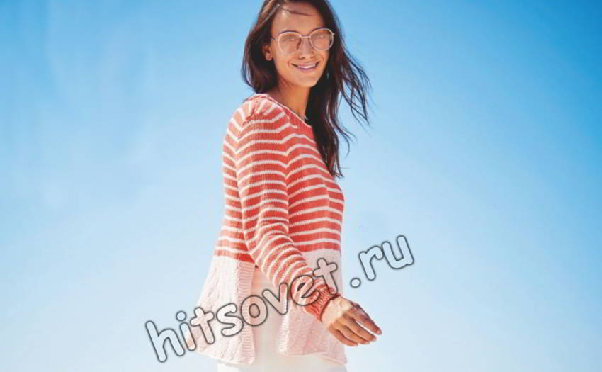 Полосатый джемпер с ромбами и разрезами - Хитсовет Модная модель для женщин полосатого джемпера с ромбами и разрезами со схемой и пошаговым бесплатным описанием вязания.