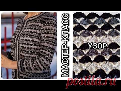 Вяжем универсальный, очень красивый узор крючком для жакета, кофточки, топа, кардигана, юбки / МК
