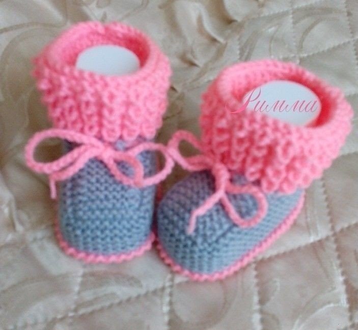 Вязаные спицами пинетки. Работы Риммы