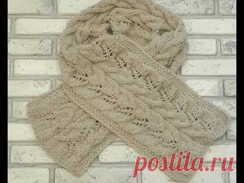 Стильный, ажурный шарф спицами! Узор "Листики и косы"! Scarf