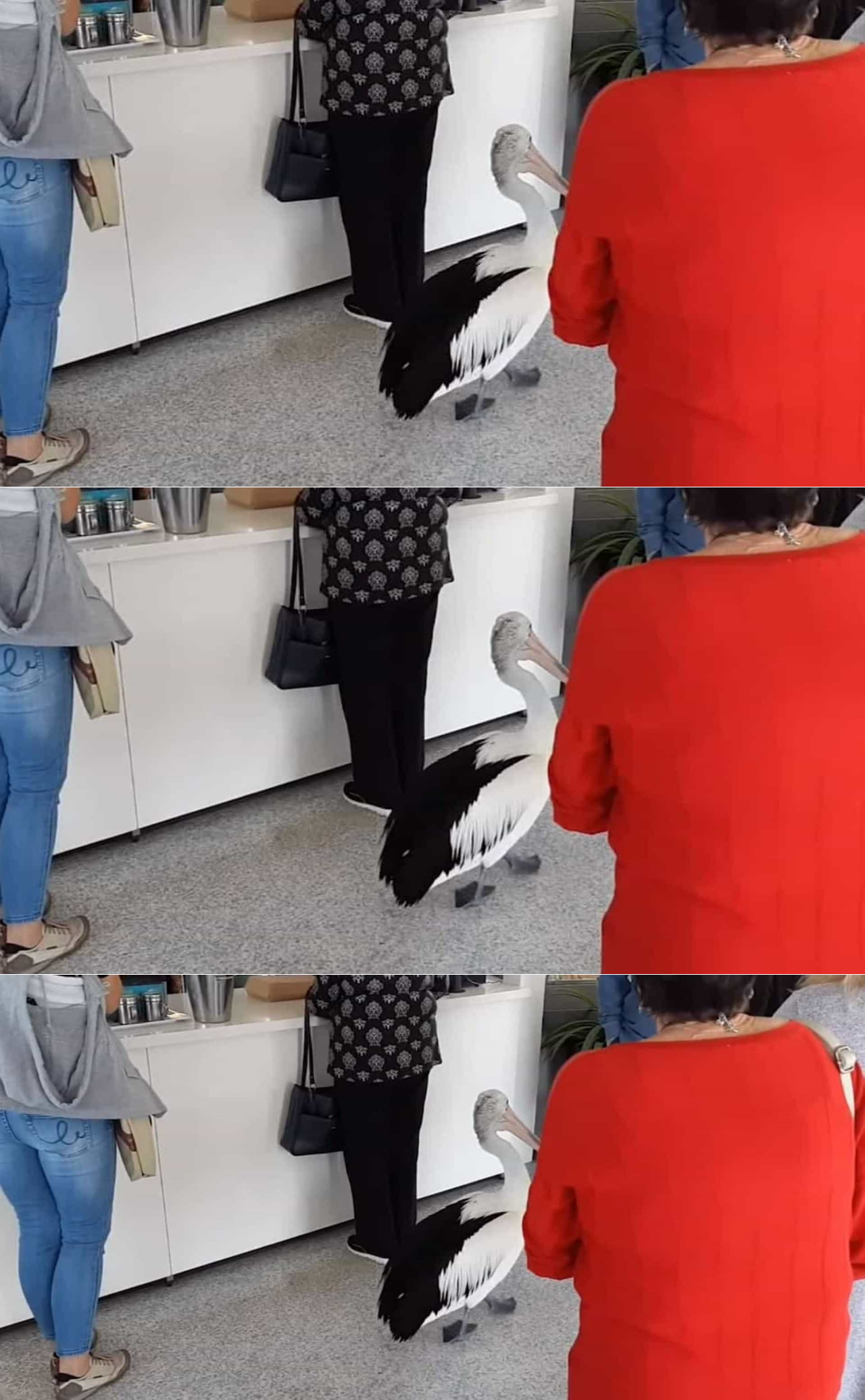 Pelicano entra em restaurante na Austrália e põe-se na fila. Ora veja