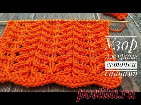 Красивый узор Ажурные веточки | Узор #48 | Lace branches knitting stitch pattern