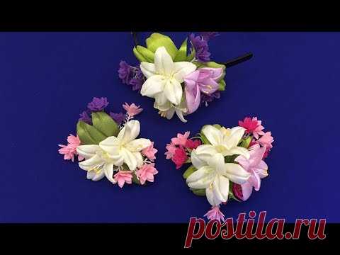 Ribbon flowers.Lily.DIY/Flores de cintas.Lirio/Лилия из лент 2.5 см
