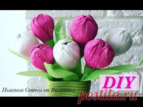 DIY: Букет из Конфет! Тюльпаны из гофрированной бумаги!