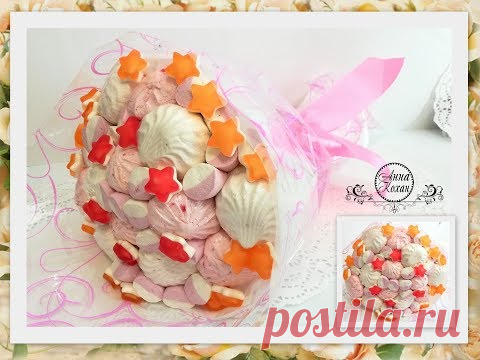 🌺БУКЕТ ИЗ ЗЕФИРА, МАРМЕЛАДА И СУФЛЕ🌺Простой мастер класс🌺 How to Make a Marshmallow Flower Bouquet