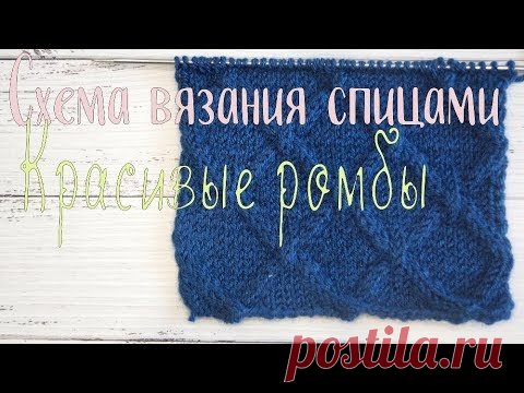 Схема вязания спицами Ромбы, узор для шапки, шарфа, снуда