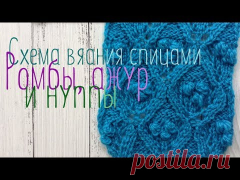 Схема вязания спицами, ажурные ромбы и шишечки (нуппы)