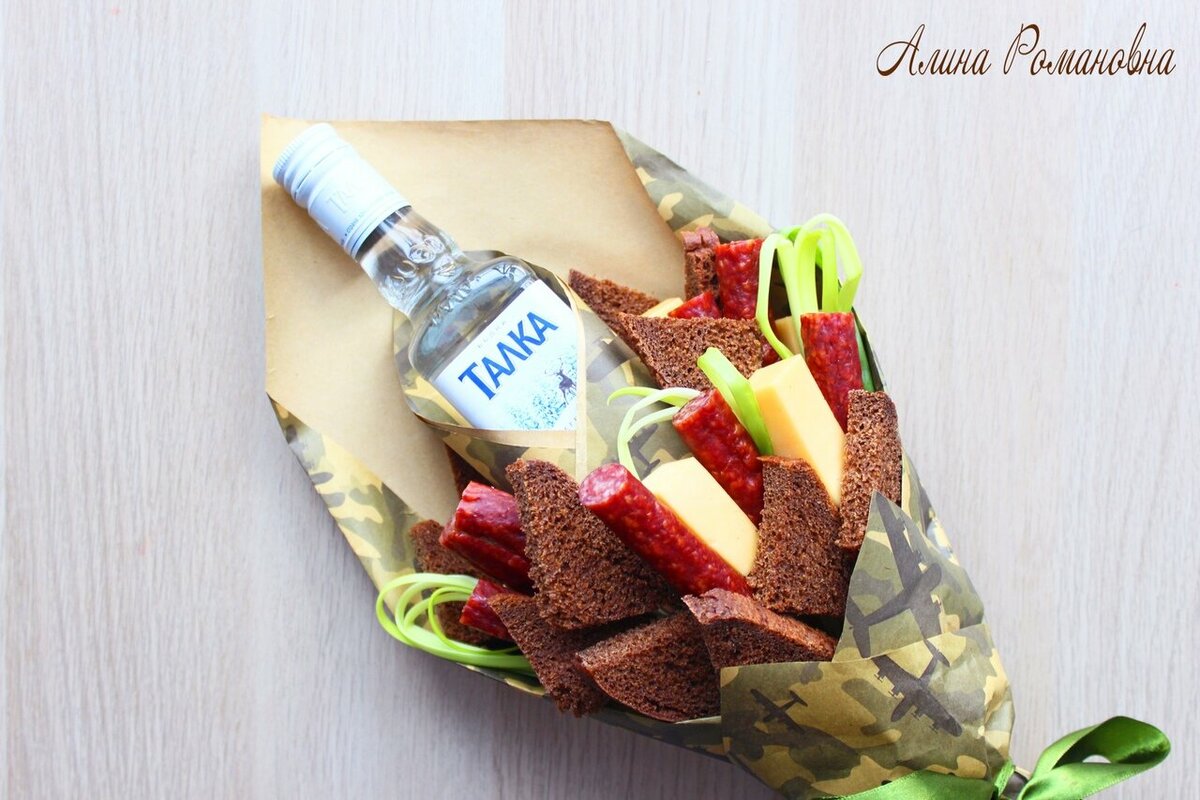 МУЖСКОЙ БУКЕТ ИЗ КОЛБАСЫ И ВОДКИ СВОИМИ РУКАМИ! | Рукоделие из бумаги и не только | Яндекс Дзен