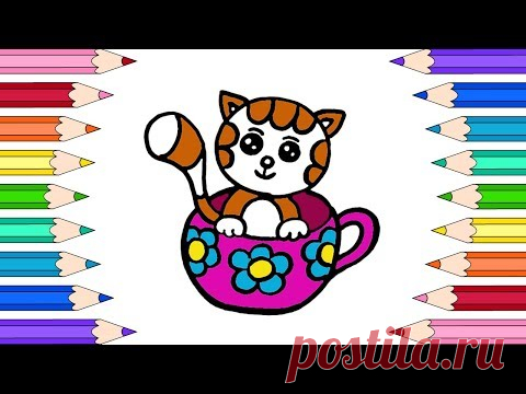 Как Нарисовать Котенка в Чашке🌼Раскраски для Детей Котенок в Чашке🌼Мультик Раскраскараскраски - YouTube