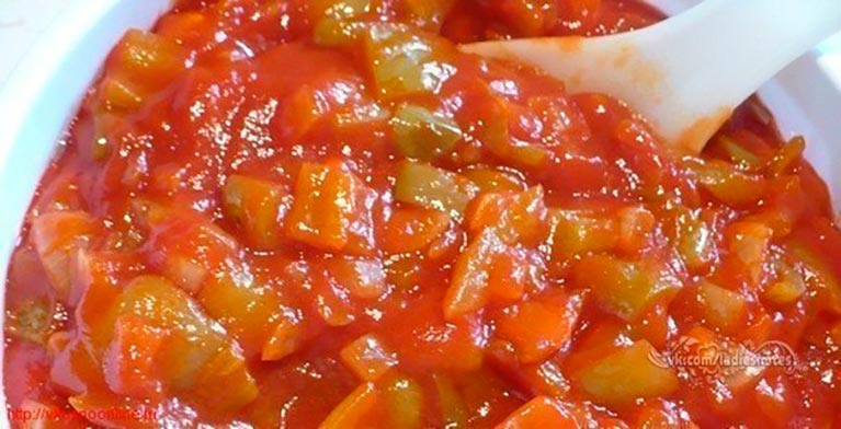 Салат-соус "АНКЛ-БЕНС" по домашнему Не побоюсь сказать, что это самая популярная закуска! Ингредиенты: 2 кг. кабачков, 2,5 кг. помидоров, 200 г. чеснока 1 кг. сладкого перца, 2 ст.ложки соли с верхом, 200 г. сахара, 200 г. подсолнечного масла, 100 г. 9%-ного уксуса. Приготовление: Помидоры с чесноком пропустить через мясорубку. Кабачки нарезать маленькими кубиками, смешать с помидорами. Добавить соль, сахар, …