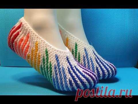 ТАПОЧКИ СПИЦАМИ "РАДУГА" , "МОРКОВОЧКИ" и ТАПОЧКИ ДЛЯ НАЧИНАЮЩИХ ЗА ДВА ЧАСА
